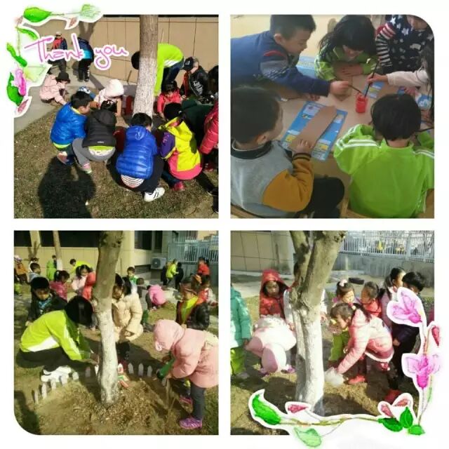 大哥哥大姐姐们亲自动手在老师的带领下涂涂画画,给小树做围栏,保护他们茁壮成长。